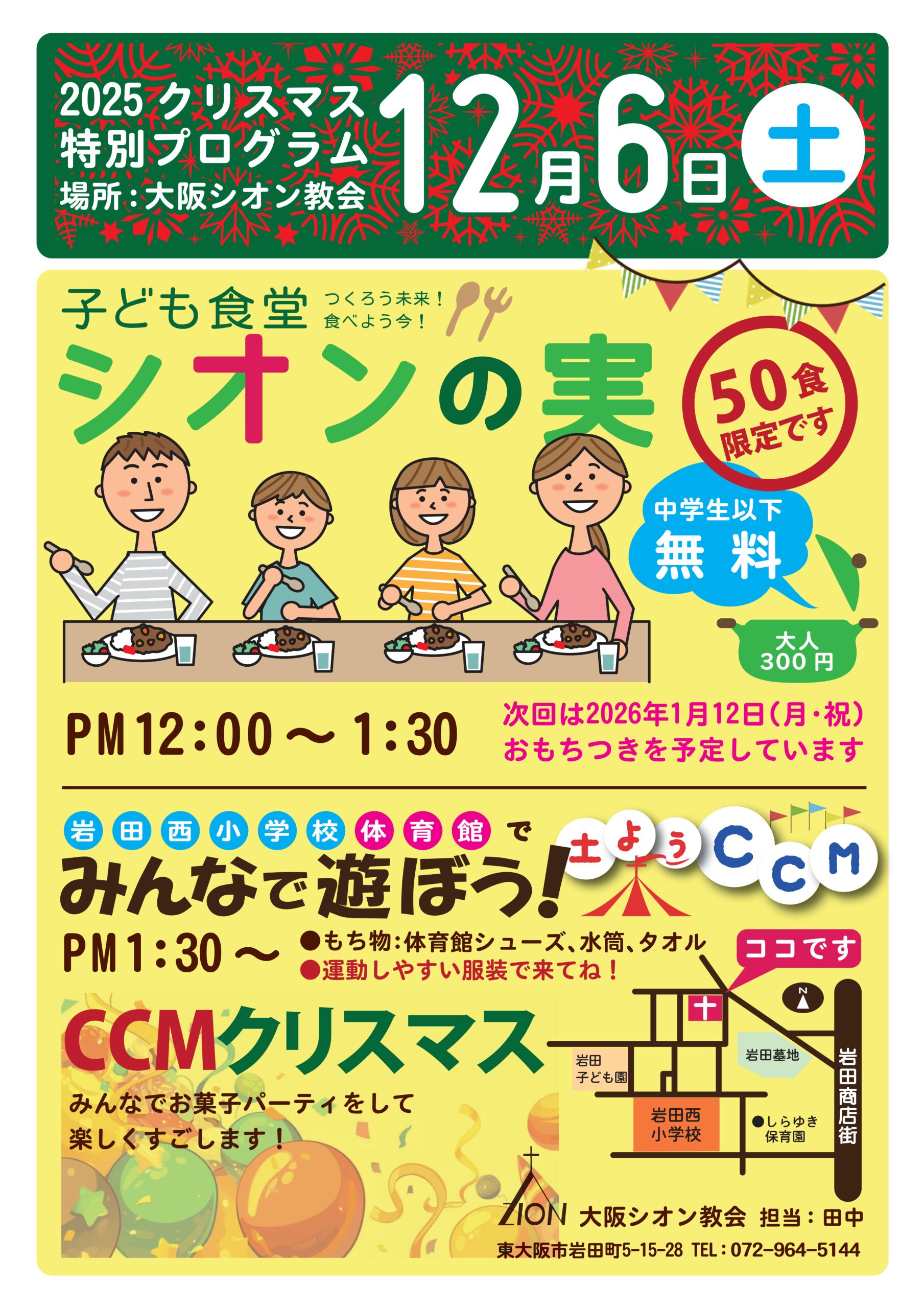 ●子ども食堂・土曜CCM・CCMクリスマス 12月6日(土) PM12:00~