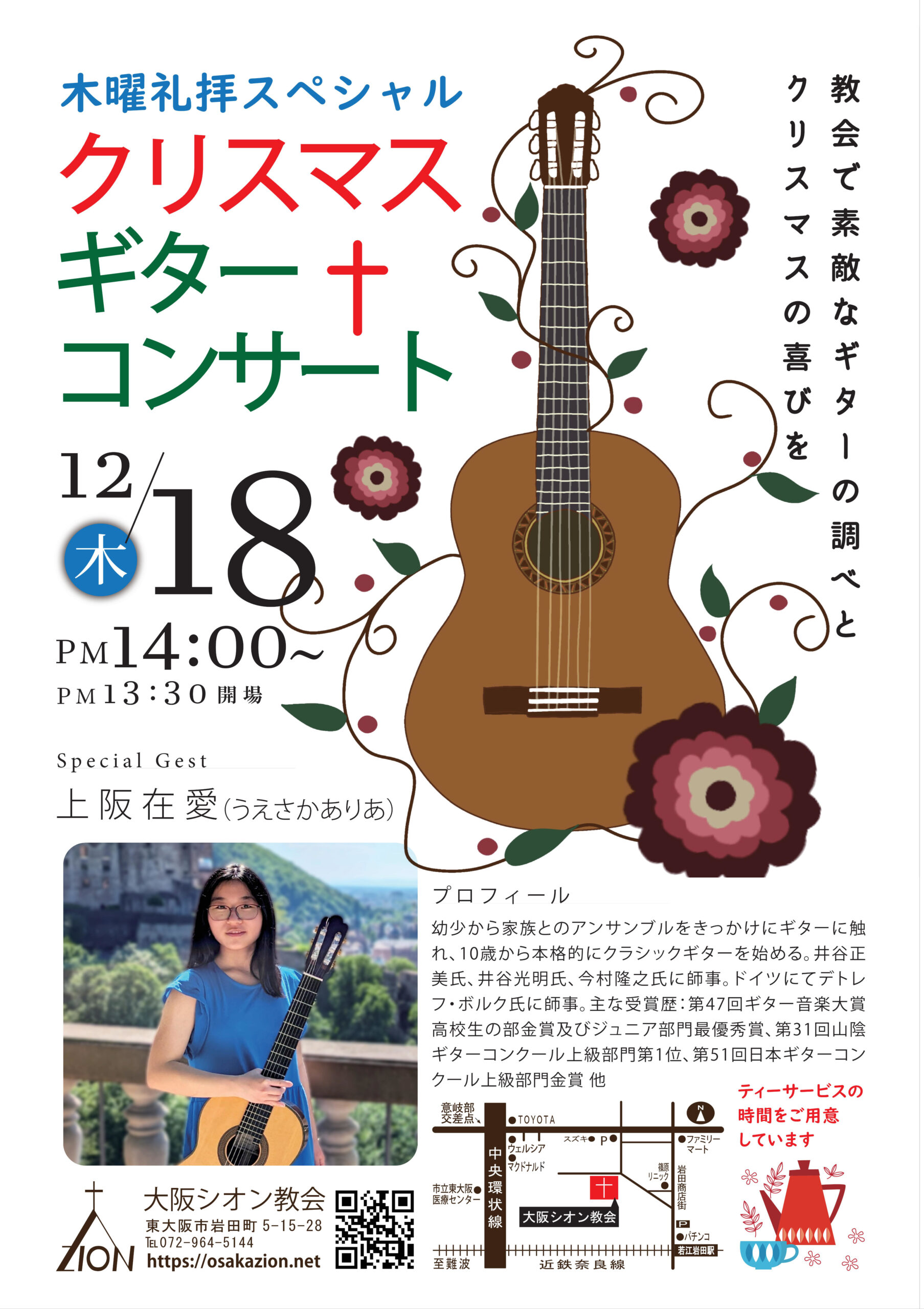 ●木曜礼拝クリスマス ギターコンサート 12月18日(木) PM14:00~